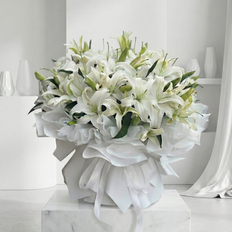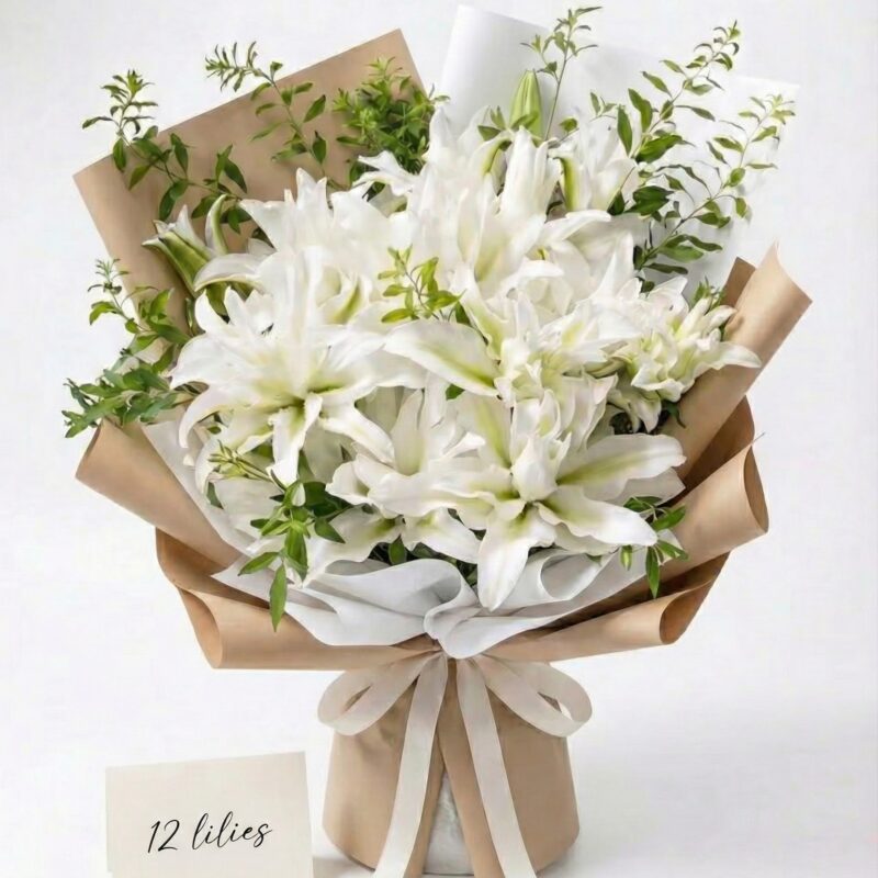 Artisan Double Petal Lily Bouquet in Size, Colour & Wrapping of Choice (Next-day only)