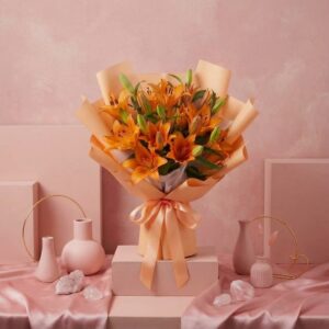 Artisan Double Petal Lily Bouquet in Size, Colour & Wrapping of Choice