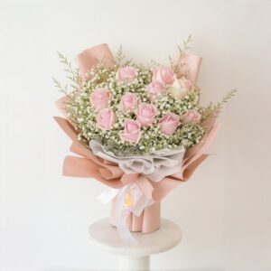24 Premium Kenya Roses with Gypsophila or Caspia