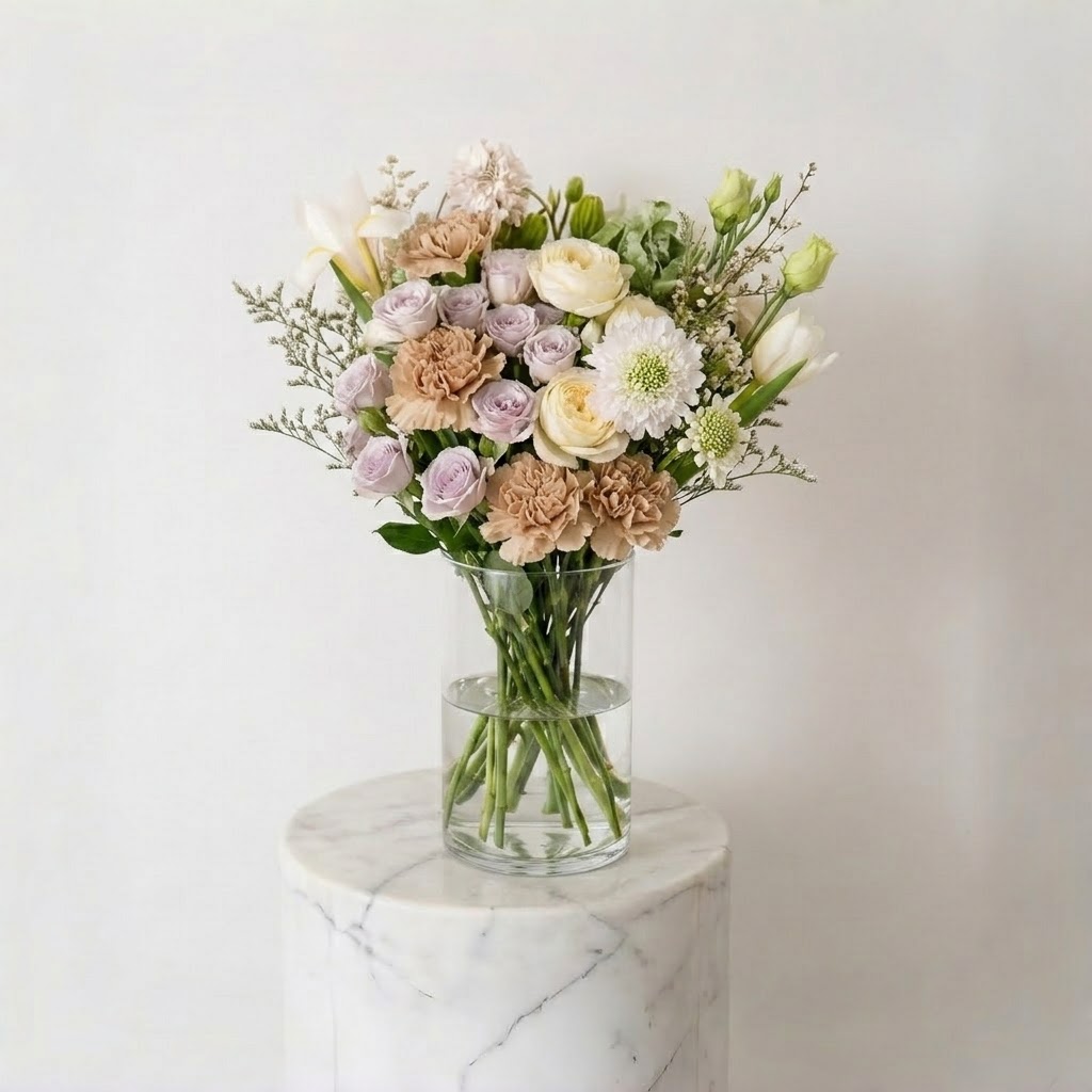Made up of Carnations, Lilac Spray Roses, Eustomas