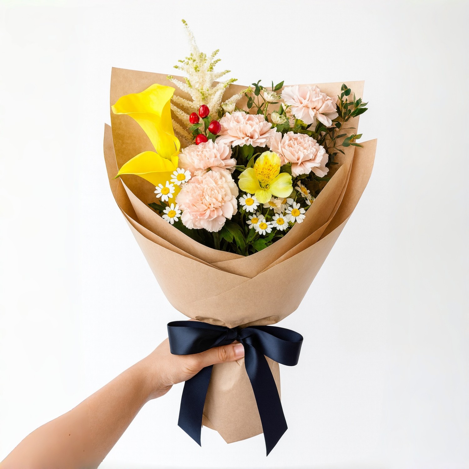 2. Complimentary Bouquet Carrier (Bouquet only)[/vc_toggle][vc_toggle title=”Flower Care Tips” style=”arrow” color=”juicy_pink”]For Wrapped bouquets – remove from packaging and place in a vase of clean water. Trim stems at an angle, and refresh water daily. With daily care, vase life generally lasts 4-7 days.