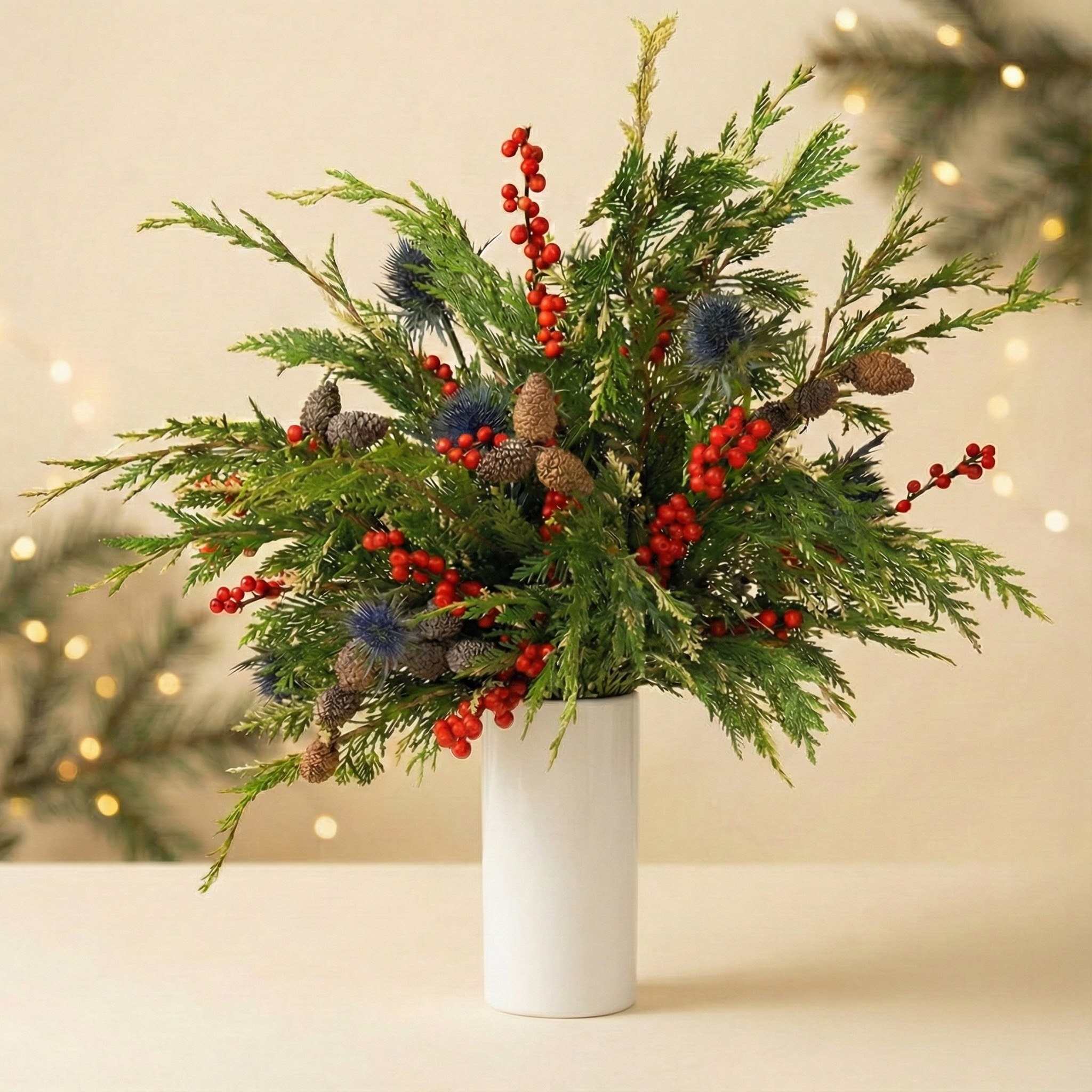 (Delivery starts 9 Dec) 2025 Artisan Christmas Vase: Cedar, Pine Cones, Red Berries