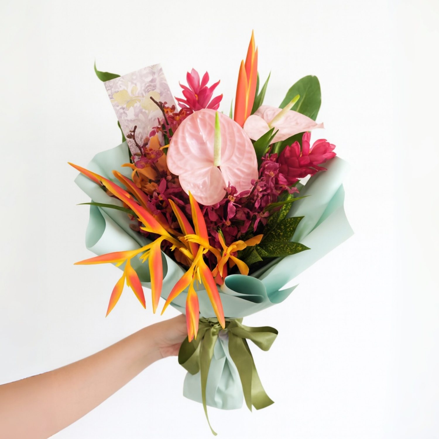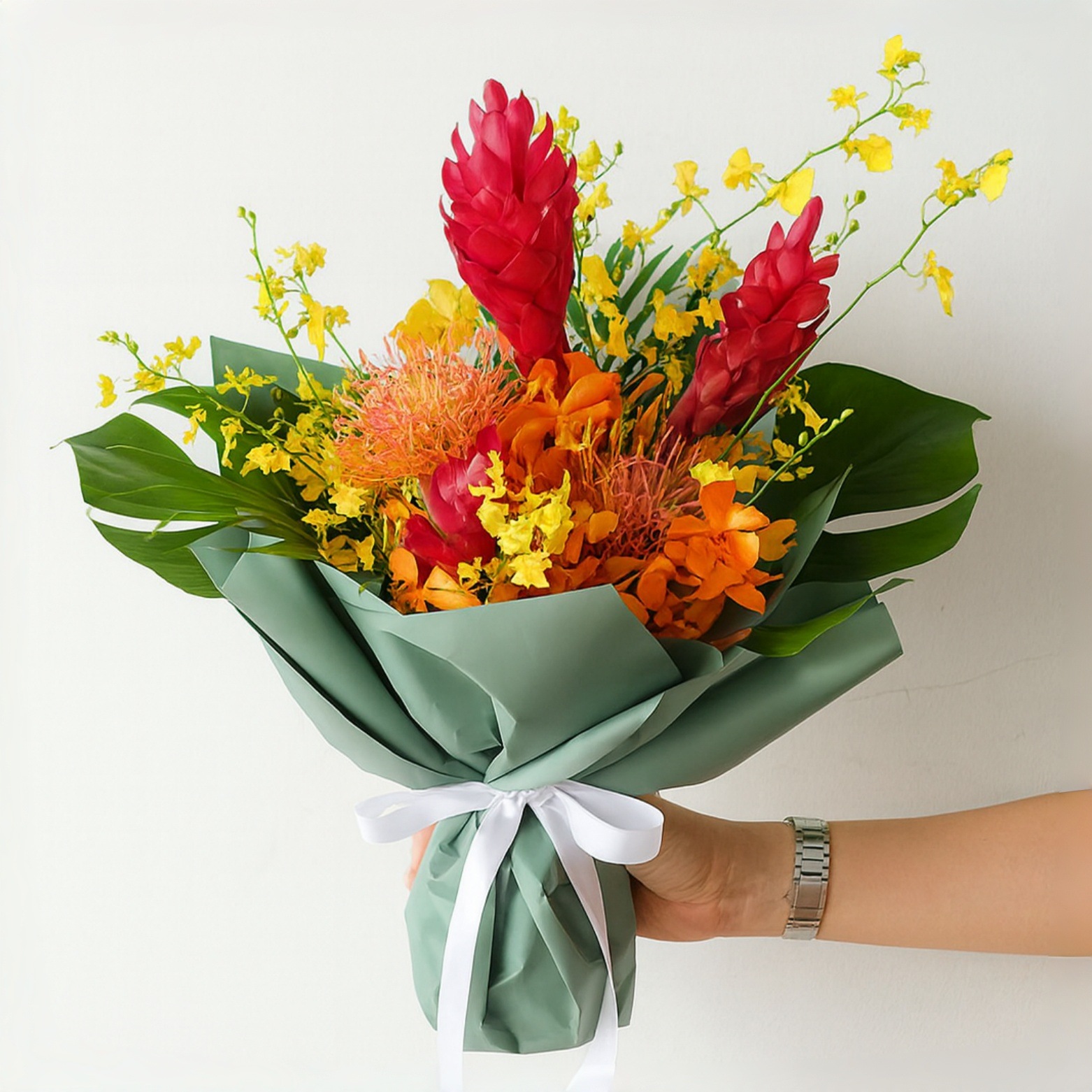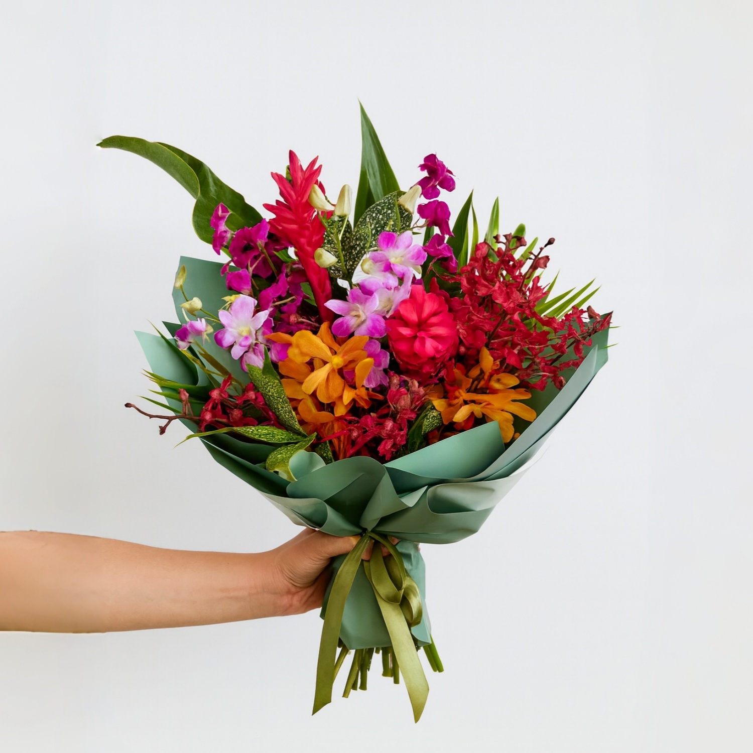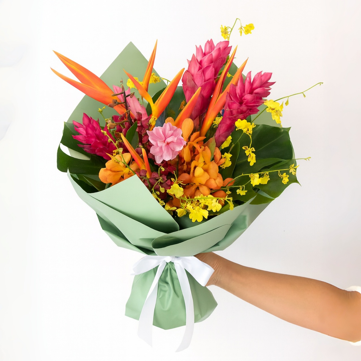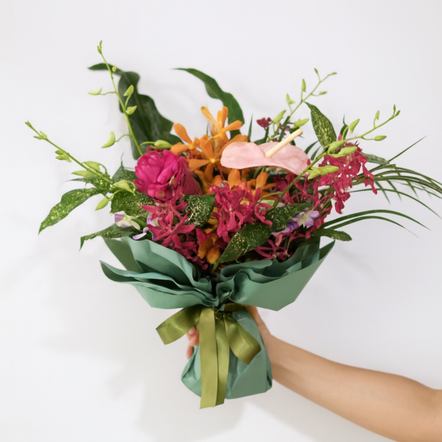 All tropical orchids and foliage are home-grown and picked from our plantations across the sea in Malaysia and via air shipment from Japan.
