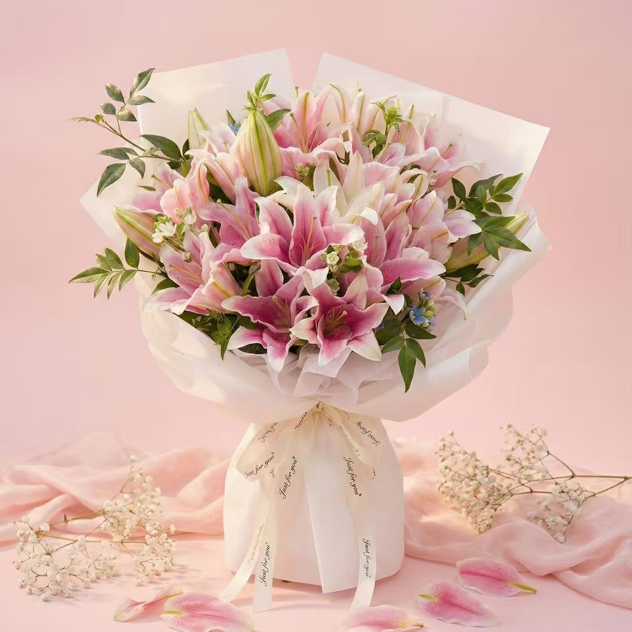 Artisan Double Petal Lily Bouquet in Size, Colour & Wrapping of Choice