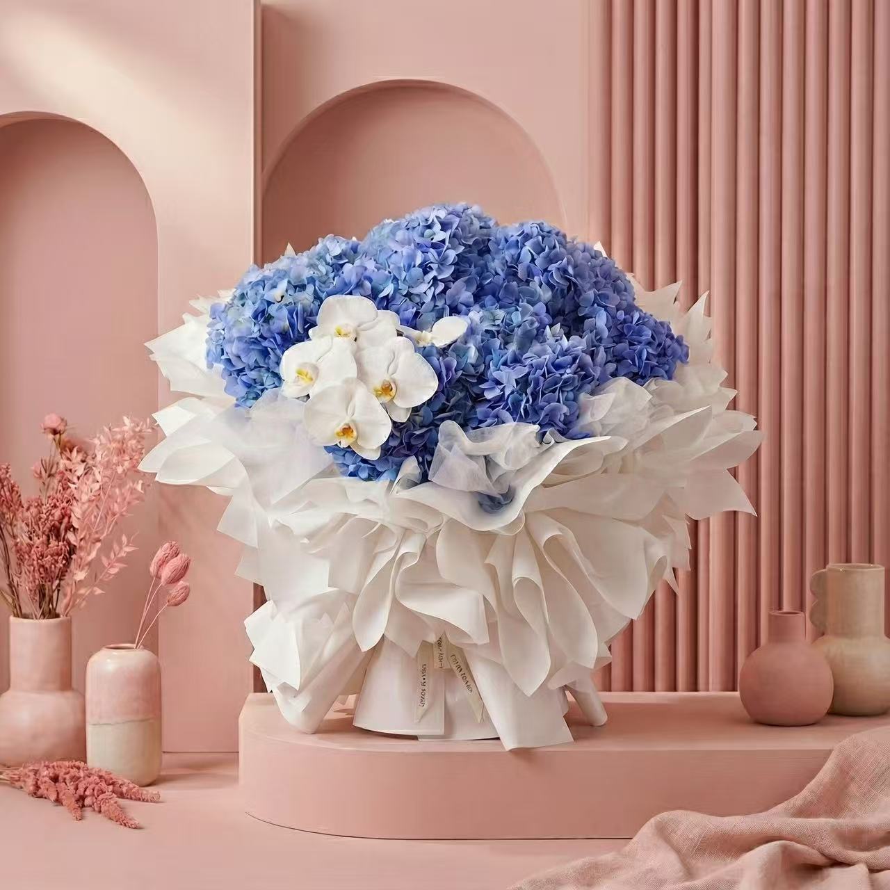 Remove all packaging and place the flowers in a clean vase filled with fresh water.