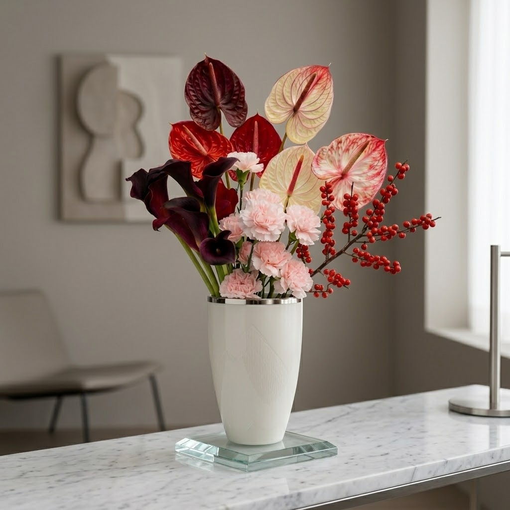 In Vase: If you ordered a bouquet and like your bouquet to be in a vase, please choose your vase here and indicate at check out: https://theflowerfactory.com.sg/product/vase-selection/