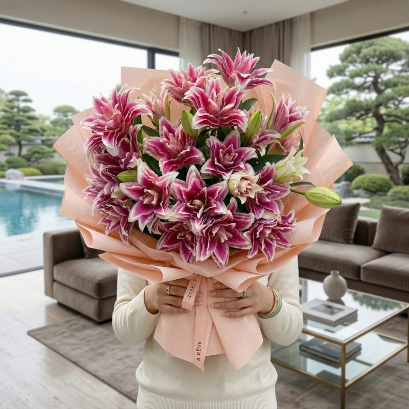 2026年母亲节系列:Artisan 18 粉色双瓣百合花束;不含绿叶